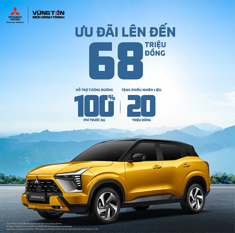 Mẫu xe B-SUV hàng đầu phân khúc, Xforce, hỗ trợ 100% LPTB cho hai phiên bản Premium và GLX. Phiên bản Ultimate có ưu đãi hơn 55 triệu đồng, gồm hỗ trợ 50% LPTB và phiếu nhiên liệu trị giá 20 triệu VNĐ.