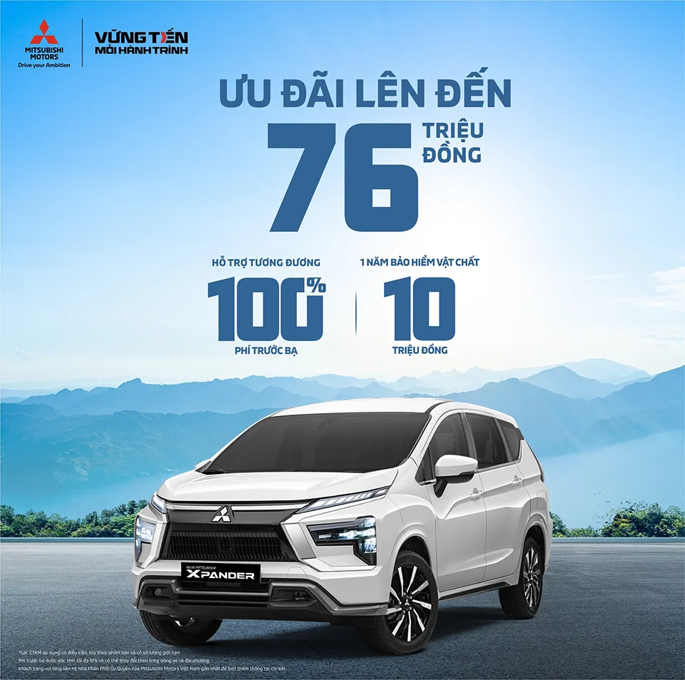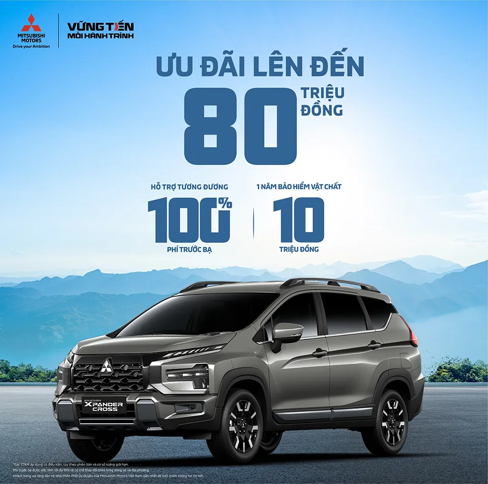 Bộ đôi Xpander và Xpander Cross mang đến cơ hội sở hữu xe với hỗ trợ 100% LPTB và 1 năm bảo hiểm vật chất, tổng giá trị ưu đãi lên tới 80 triệu đồng.