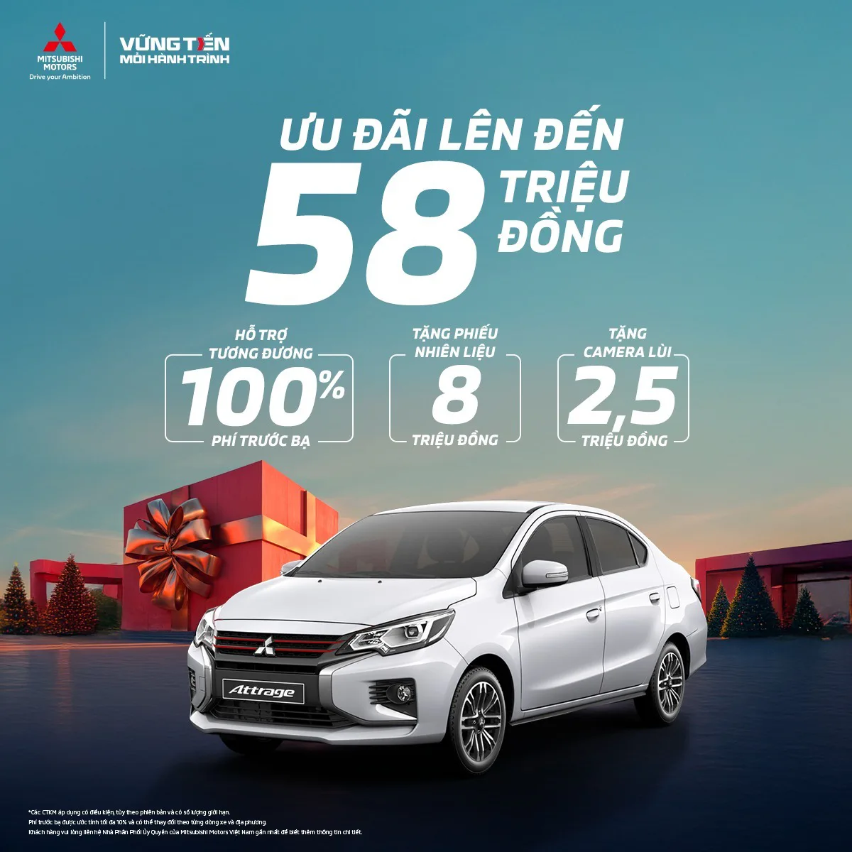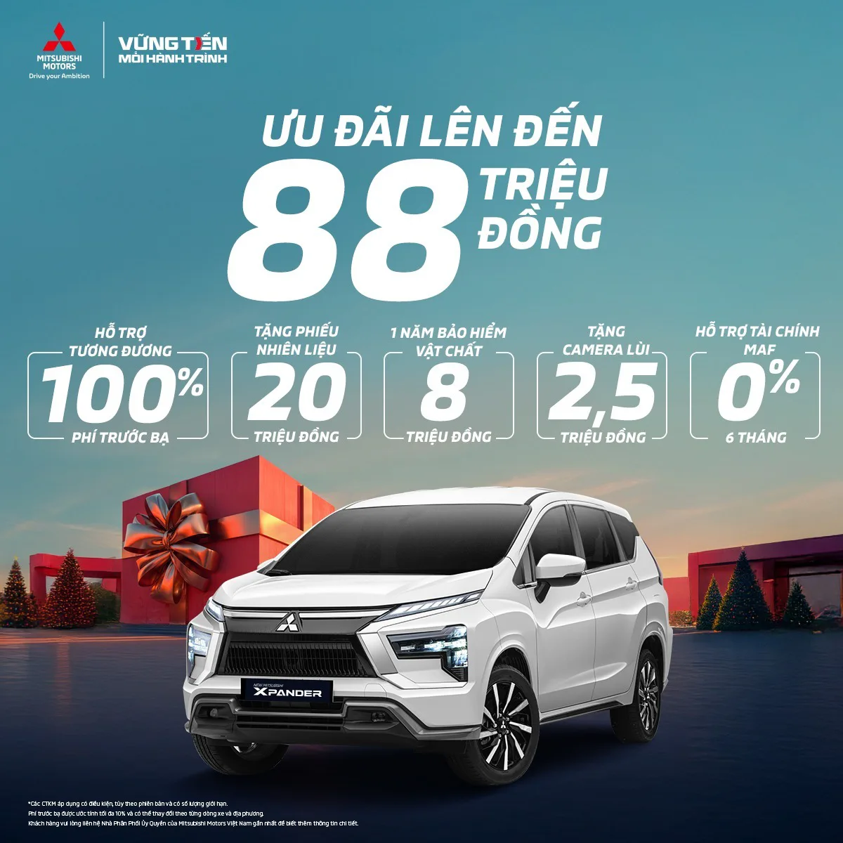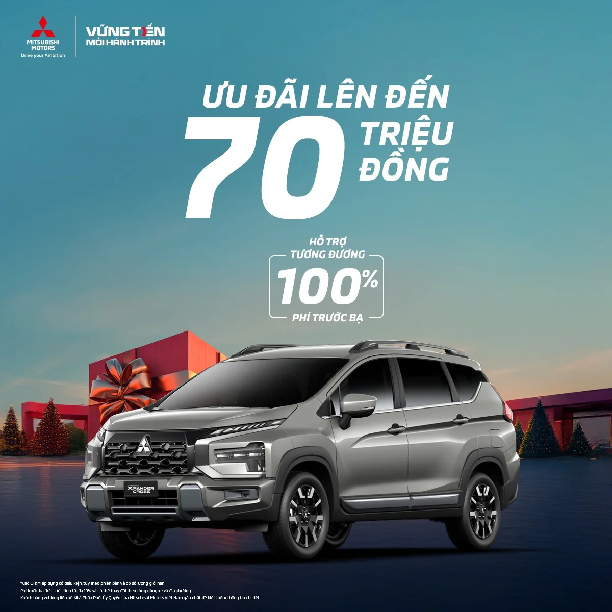 Tháng 12/2025, Mitsubishi Motors Việt Nam phối hợp cùng hệ thống NPP Mitsubishi ISAMCO Hồ Chí Minh mang đến chương trình ưu đãi 100% lệ phí trước bạ, cùng nhiều quà tặng giá trị dành cho các mẫu xe Xpander, Xpander Cross, Xforce, Attrage và All-new Triton.